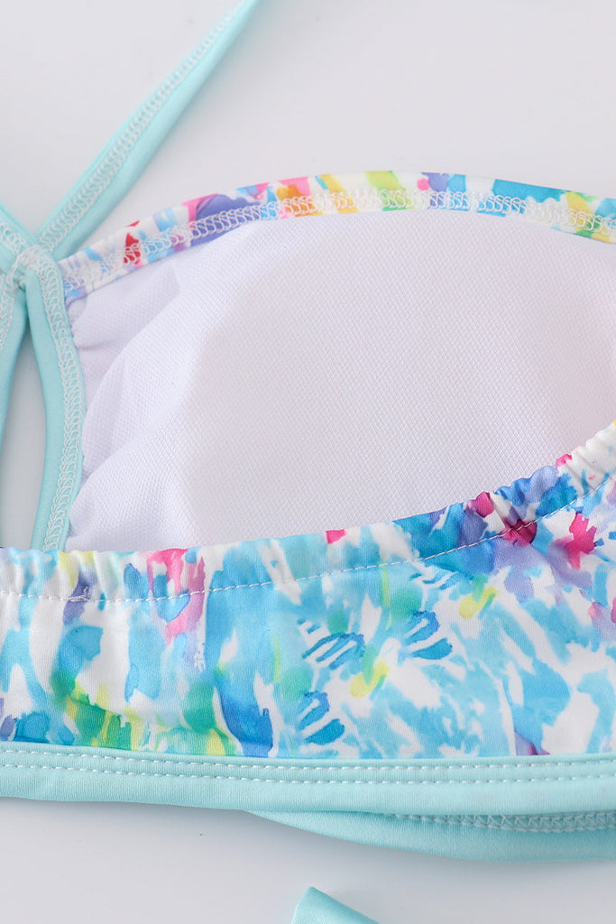 Get ready to make a splash in our Mint Rainbow Splash Mom Bikini. This playful bikini features a mint color with a fun rainbow splash pattern. Perfect for stylish moms who don't take themselves too seriously. (No two bikinis are alike!)
