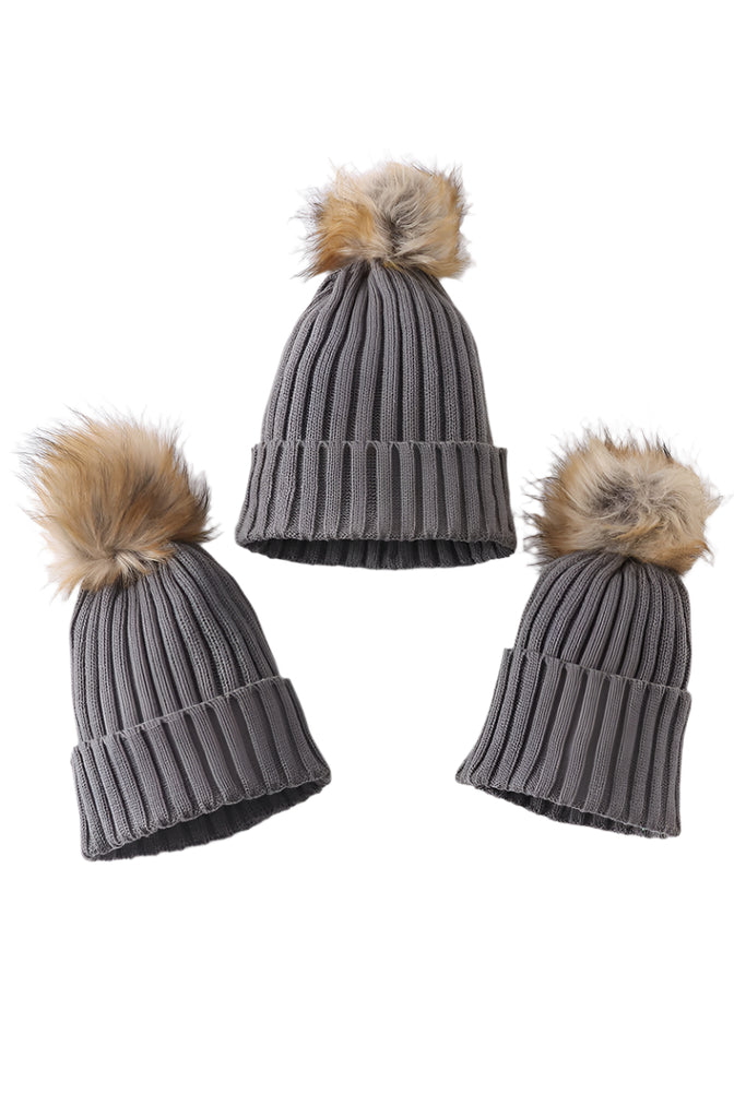 Dust rose cable knit pom pom beanie hat baby toddler adult
