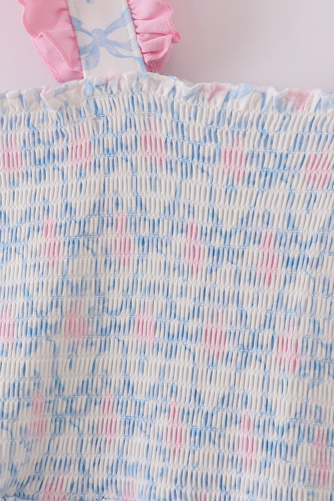 This dress is sure to make you stand out at any occasion with its bold yet charming blue bow tie print! The smocked design adds a unique touch to the classic "mom dress" style. Perfect for moms who want to make a playful and stylish statement.