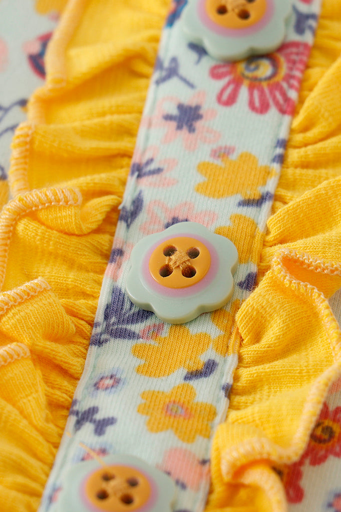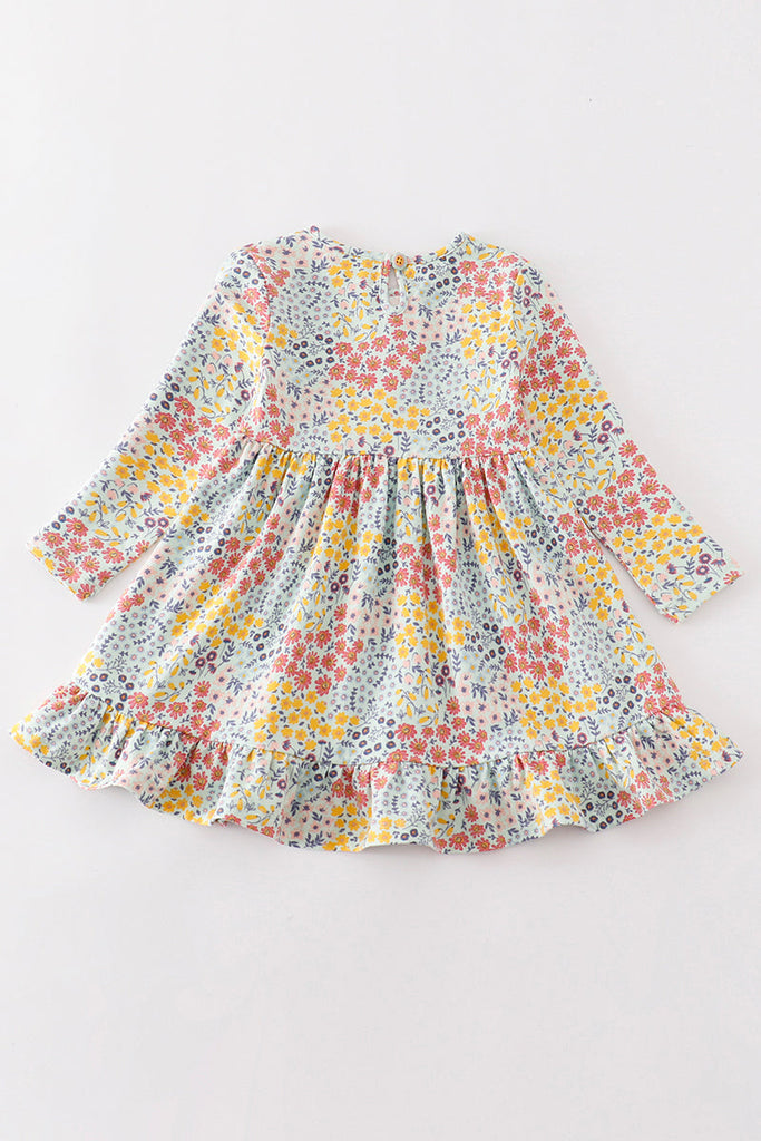 Unleash your little one's playful side with our Blue Floral Print Ruffle Girl Dress. Featuring a vibrant blue floral print and playful ruffle details, this dress combines style and comfort in one. Perfect for any occasion, your child will be the star of the show!