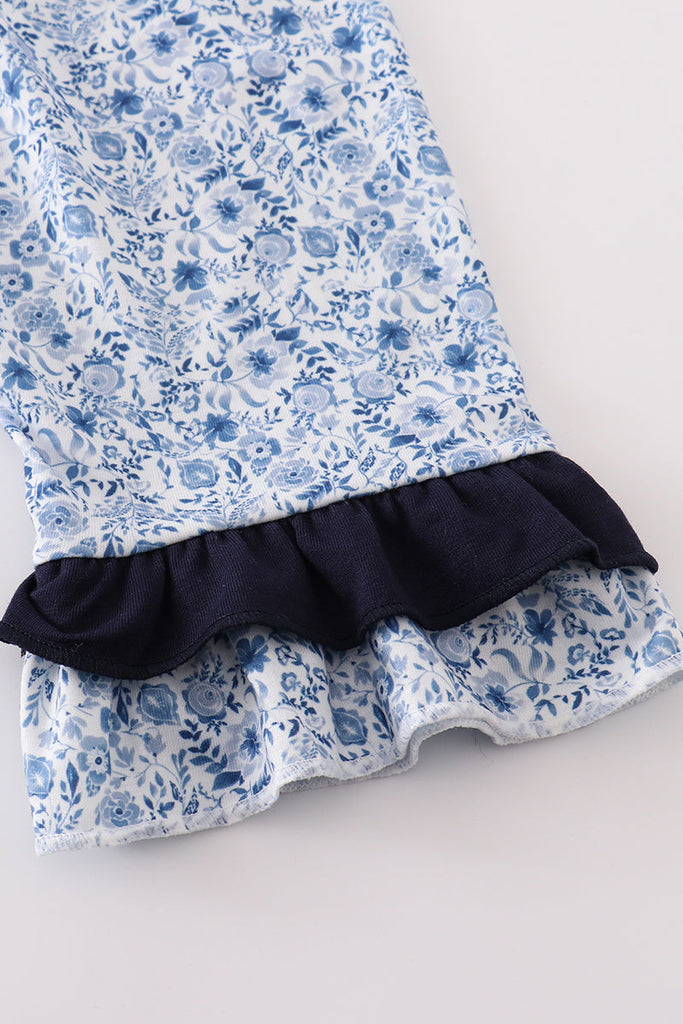 Get ready to be the most stylish mom around with our Blue Floral Print Tiered Ruffle Dress. With its playful tiered design and trendy floral print, you'll make a statement wherever you go. Plus, the mom ruffle adds a touch of fun and uniqueness to your look. Perfect for any occasion, this dress will have you feeling confident and fabulous! (Mom-approved!)