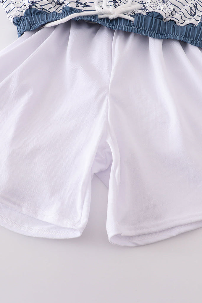 Blue stripe anchor print dad swim trunks