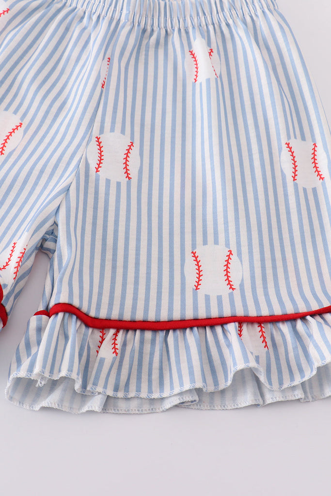Score a home run with these blue stripe baseball pajamas! Perfect for nights of snoozing and days of lounging. Hit a style home run with this playful and comfortable set.