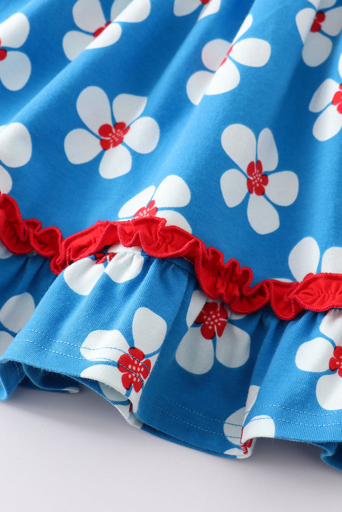 Platinum Blue & white floral print ruffle strap dress