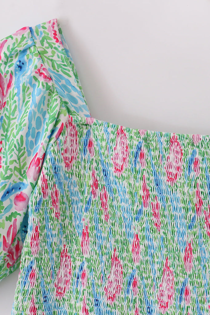 Get ready to slay in this playful and vibrant green smocked mom dress! With its unique smocked design, it hugs your curves in all the right places. Perfect for any casual or dressy occasion, this dress will make you stand out and feel confident. Get it now and become a fashionista mom (in a good way, of course!)