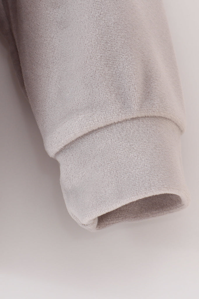Add some cozy, blessed vibes to your wardrobe with this grey velvet mom&me sweatshirt. Featuring stylish embroidery and a matching set, this unique top is perfect for showing off your playful, quirky side. Bless up!