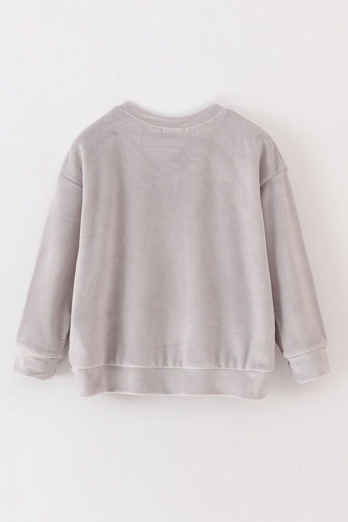 Grey velvet blessed embroidery mom&me sweatshirt