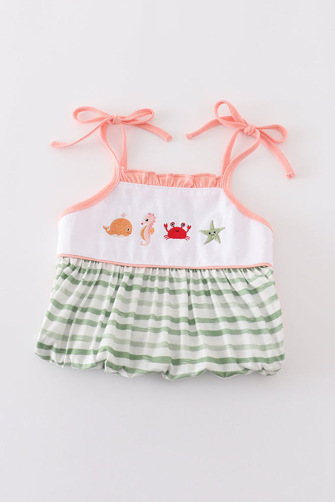 Add a touch of whimsy to your wardrobe with our Marine Creature Embroidery Stripe Set! Featuring playful sea creatures embroidered onto classic stripes, this set is sure to make a splash wherever you go. Perfect for stylish marine lovers (and those who just want to have some fun).