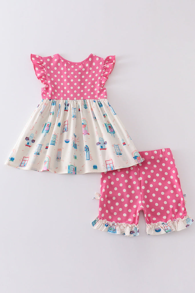 Introducing the Platinum balcony print girl set, featuring a quirky and playful design that will bring a splash of fun to any girl's wardrobe. With this set, she'll be the star of her balcony (and her closet)! Perfect for the girl who doesn't take herself too seriously!