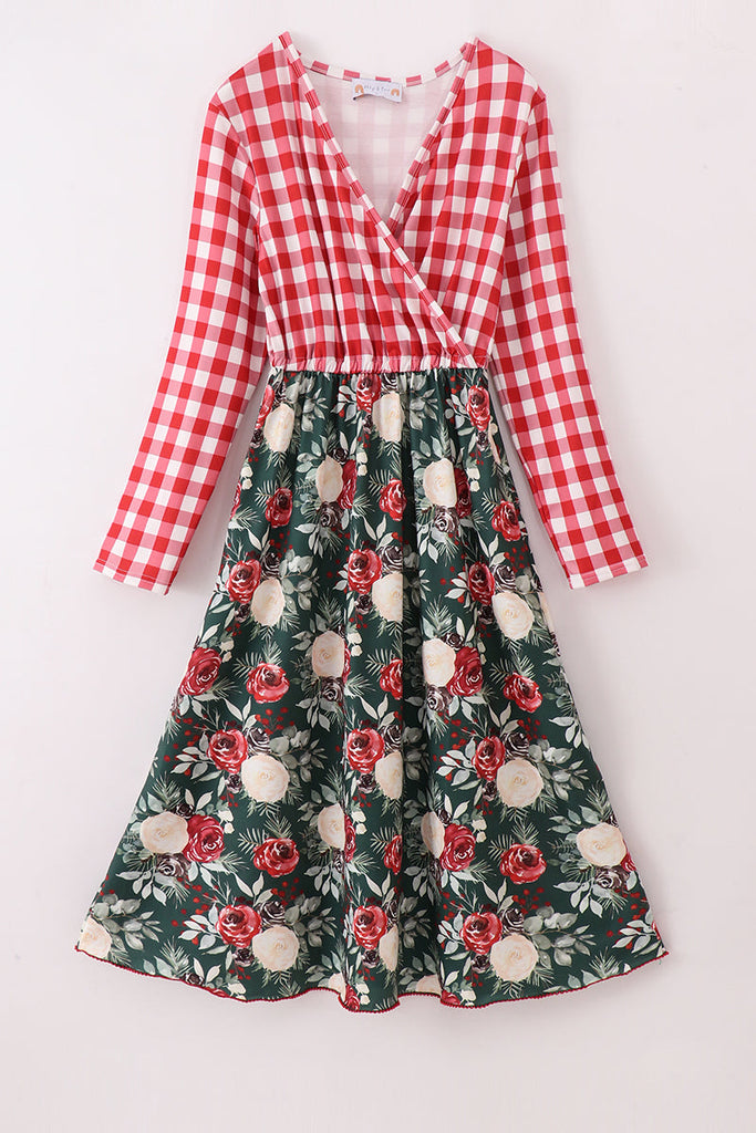 This playful mom&me dress will have you and your little one twinning in style! The vibrant red floral gingham pattern is perfect for any occasion. With its lively color and fun design, this dress is sure to turn heads. Get ready to make some adorable memories together!