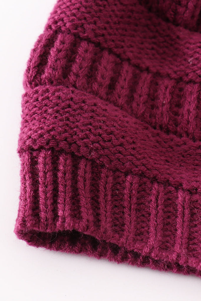 Violet pompom cable beanie